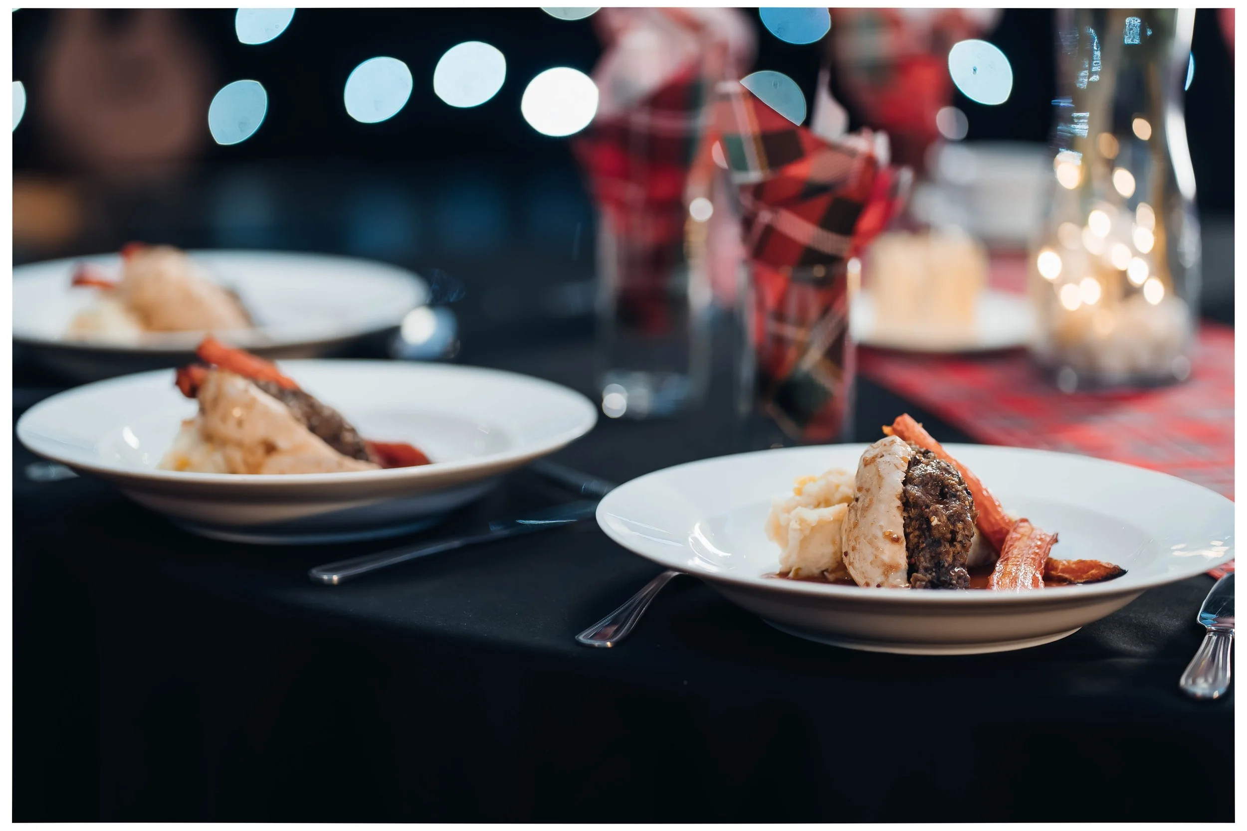 The Meal is served with a entertainment program of Pipe tunes and Traditional Scottish Highland Dancers