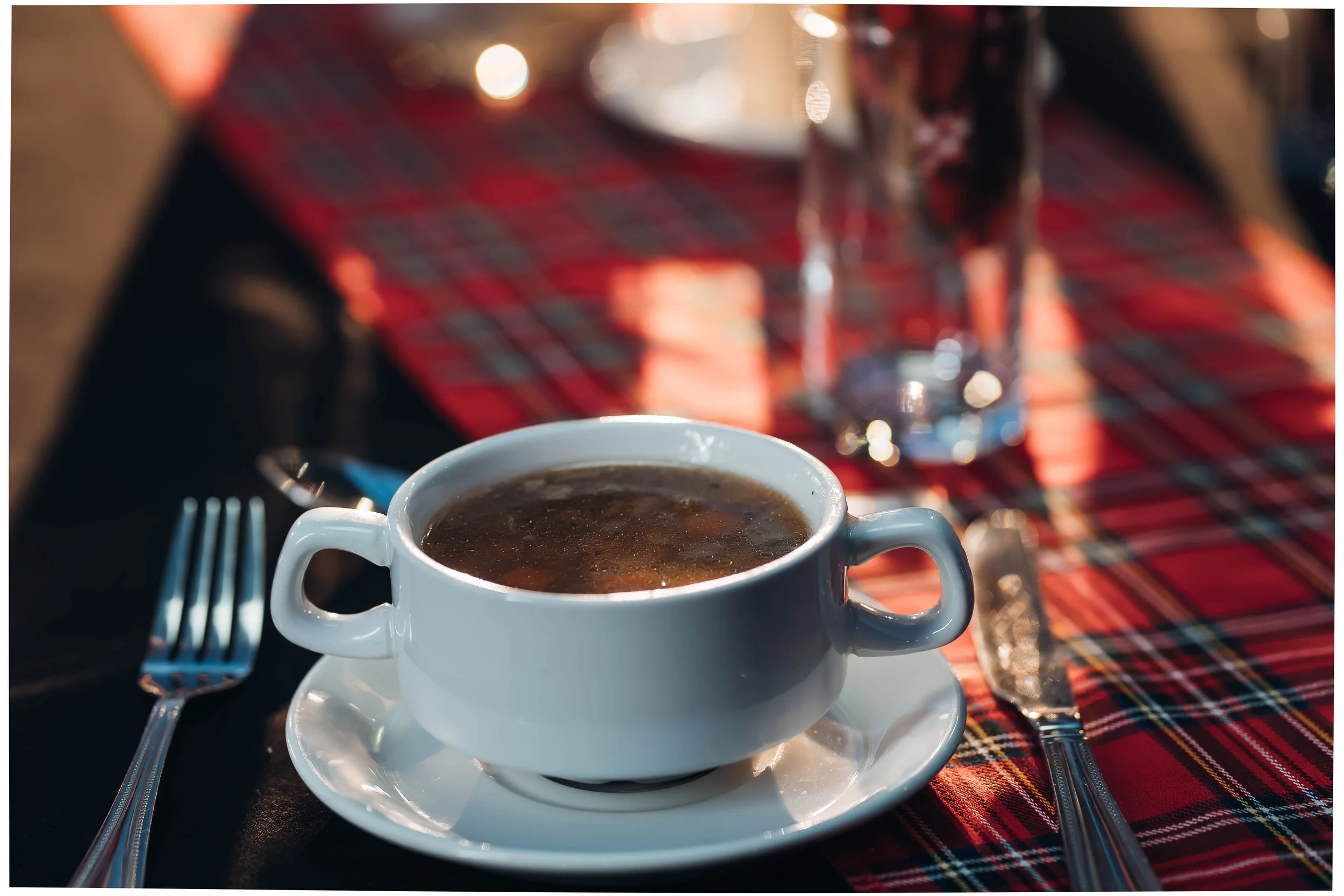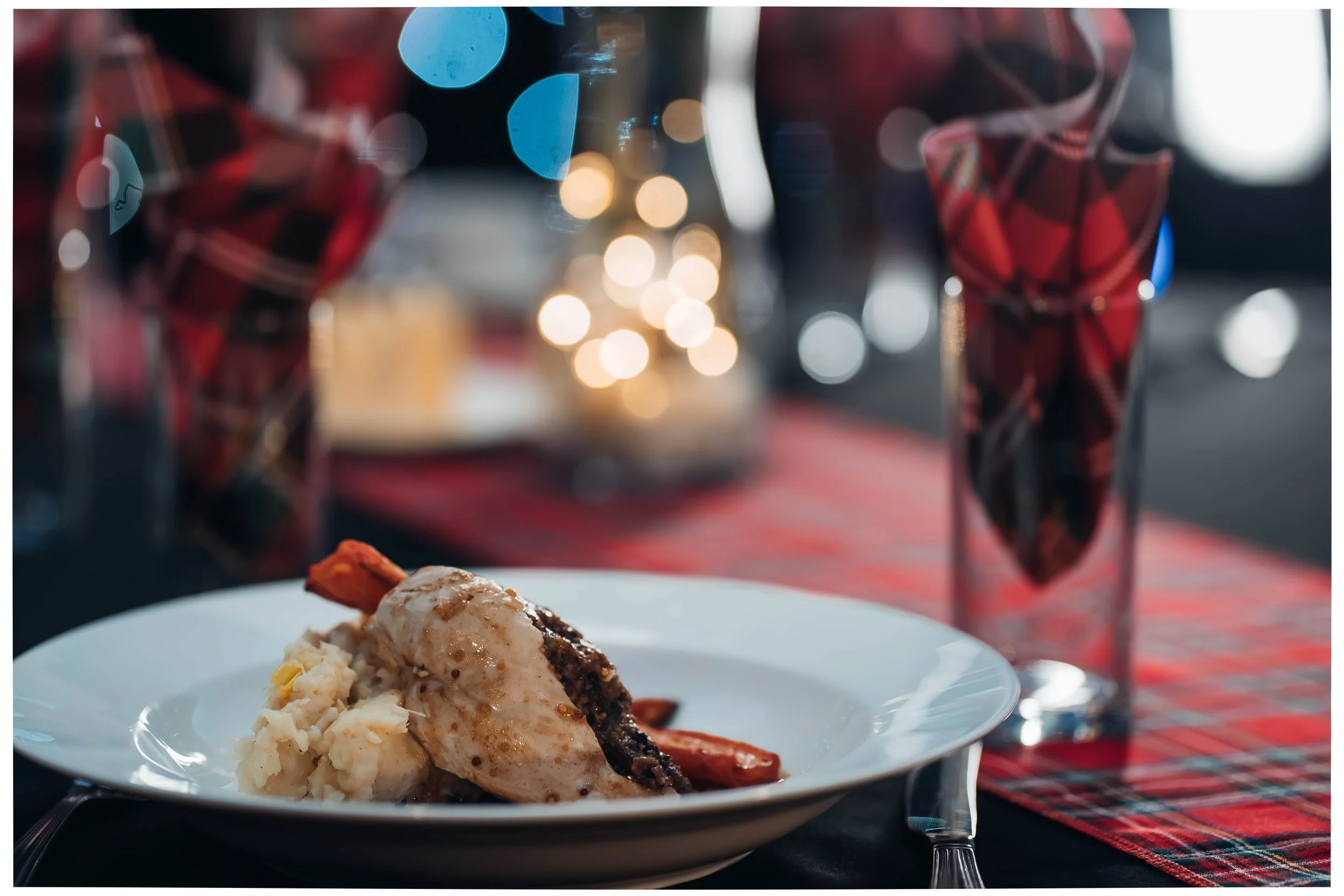 1745 events offer a stunning 4 course menu of Traditional Scottish dishes, including a Haggis taster course, introduced by our Piper Cameron.